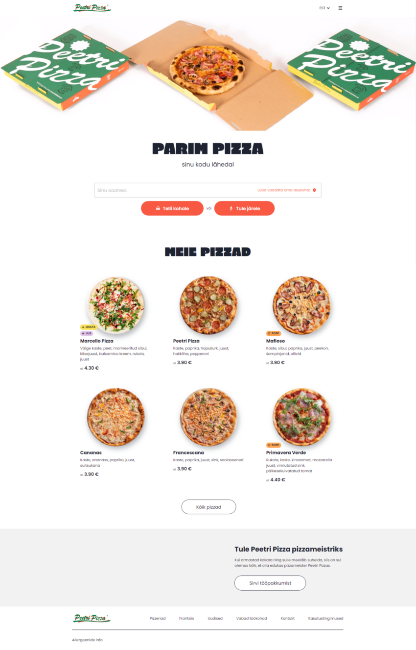 Kuna Peetri Pizza on frantsiis, siis tähendab see, et kõikidel restoranidel üle Eesti võivad hinnad, tooted menüüs ja lahtiolekuajad mõnevõrra varieeruda. Selleks, et iga koht saaks säilitada osalise autonoomsuse ülejäänud süsteemist, jätsime osa väärtusi kohandatavaks.
