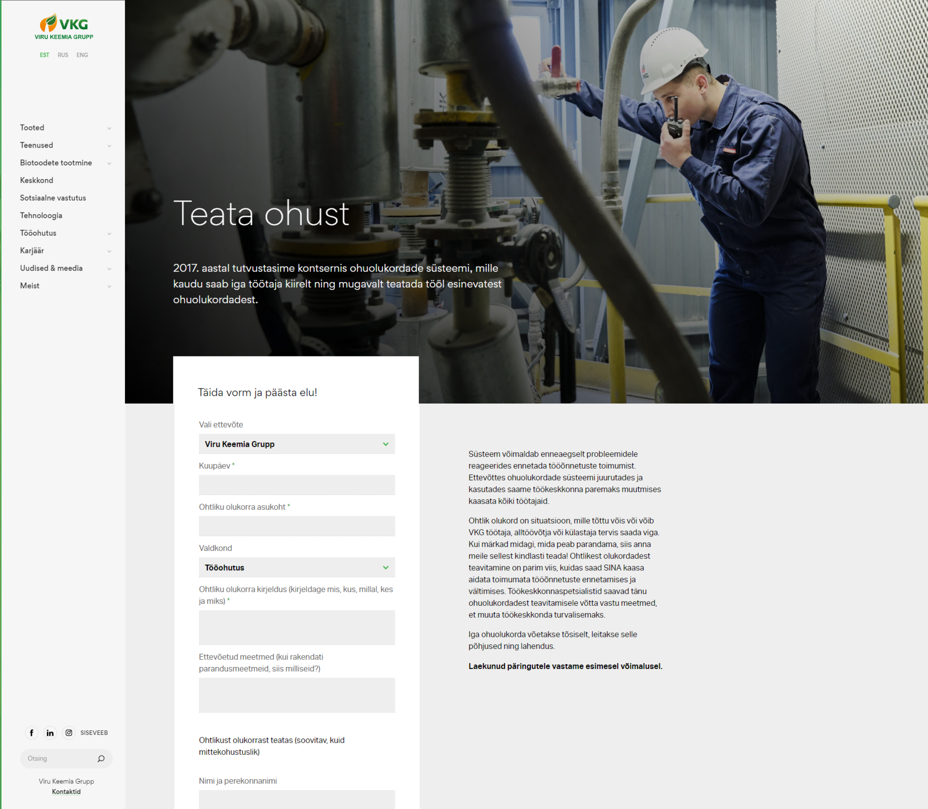 Lisaks tõime VKG vanast veebist üle uudiste arhiivi ning galeriide struktuuri. Samuti on nüüd igal töötajal võimalus veebivormi kaudu teavitada esinevatest ohuolukordadest ning vormi sisestus edastab informatsiooni ka automaatselt nende süsteemi.