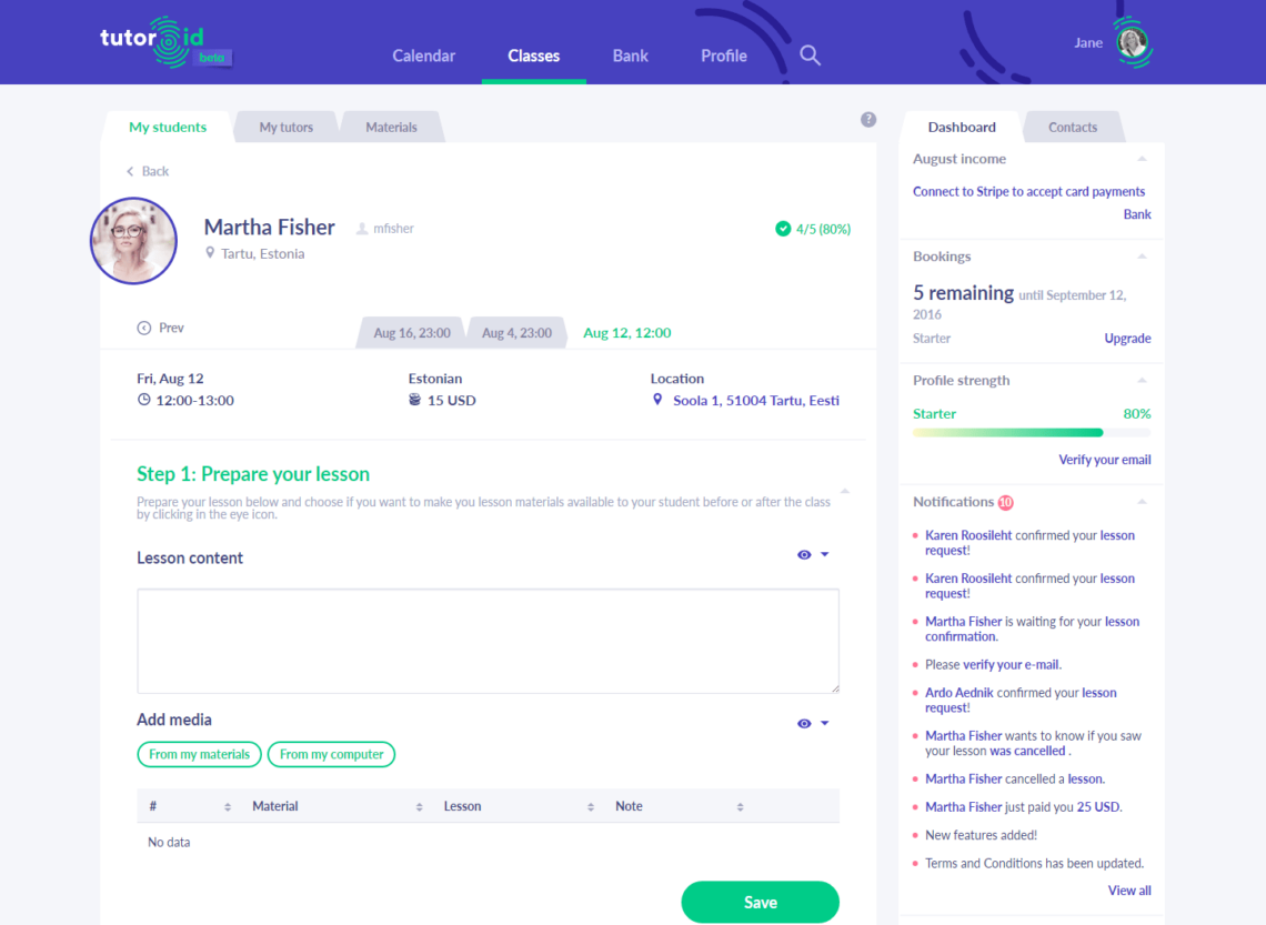 The goal was to create powerful tool for the teachers for scheduling appointments, accepting payments and automating the marketing process. The tool needed to be fast, reliable and easy to use, both for the teachers and their students.