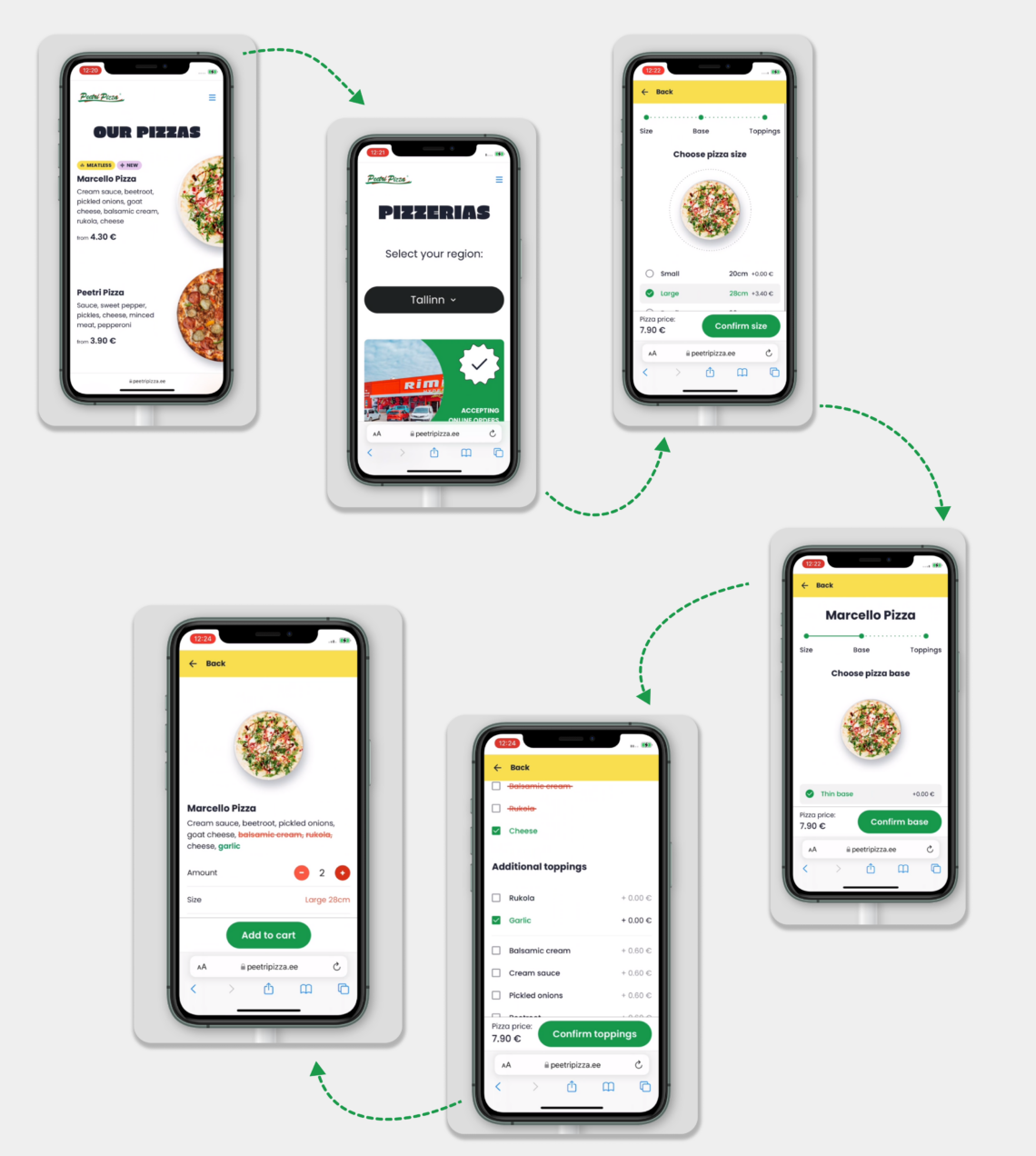 Biggest challenge was not to create three websites, but three interwoven systems which communicate with each other seamlessly. What we needed to do was to create a link between the customer and the pizzeria, so that when someone orders a pizza, the pizzeria could accept the offer and display live updates on the progress to the buyer on the other side.